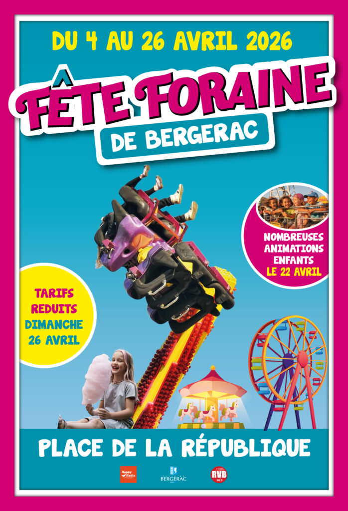Venez vous amuser en famille place de la République en centre-ville de Bergerac du samedi 4 au dimanche 26 avril 2026.
