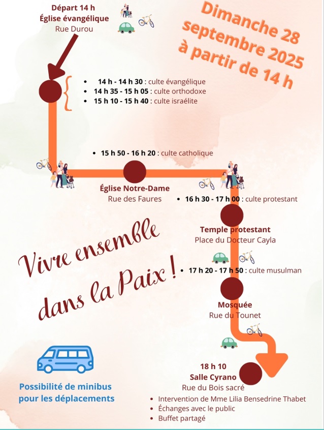 Dans chaque lieu de culte visité le thème « Vivre ensemble pour la paix » sera abordé.