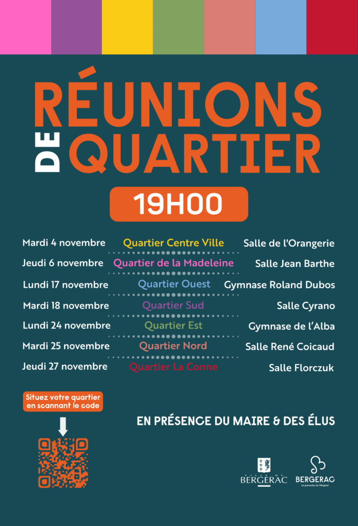 Jonathan Prioleaud, Maire de Bergerac et le Conseil Municipal invitent les habitants du Quartier Sud à une réunion de quartier, à partir de 19h.