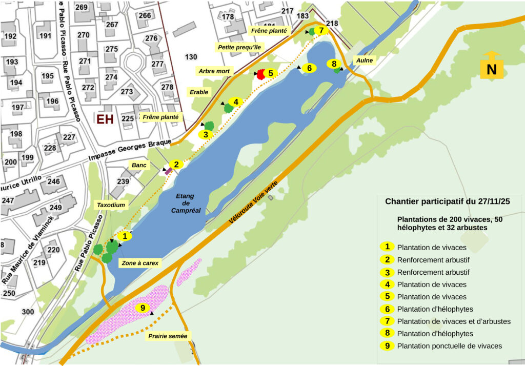 Lancé en 2024 dans le cadre du Budget participatif, le projet de végétalisation et de valorisation de l’Étang de Campréal continue de prendre forme. Imaginée par les habitants du Conseil de Quartier Est et accompagnée par la Ville de Bergerac, cette démarche vise à redonner toute sa richesse écologique, pédagogique et familiale à cet espace naturel apprécié de tous.